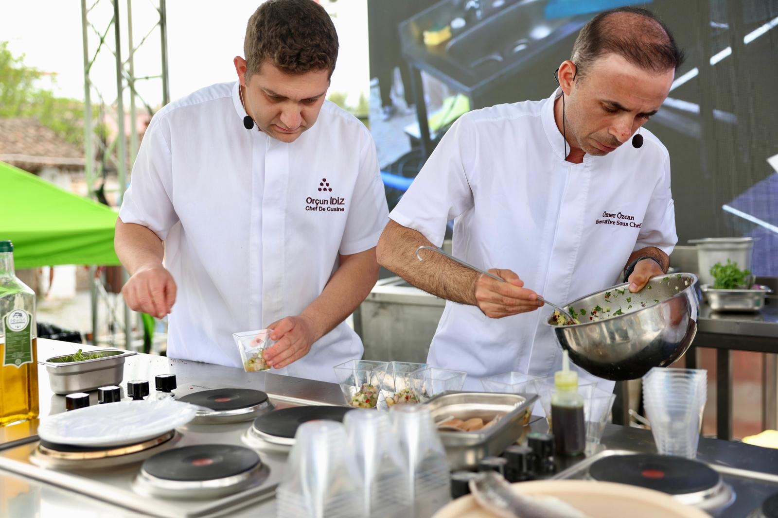 Festival alanında Ege’nin birbirinden özel yemekleri, zeytinyağlıları, ot yemekleri ve deniz ürünleri ziyaretçilerin beğenisine sunulurken, yerel üreticiler de ürünlerini tanıtma fırsatı buluyor. Katılımcılar hem lezzet yolculuğuna çıkıyor hem de Ege kültürünü yakından tanıma imkânı elde etti.