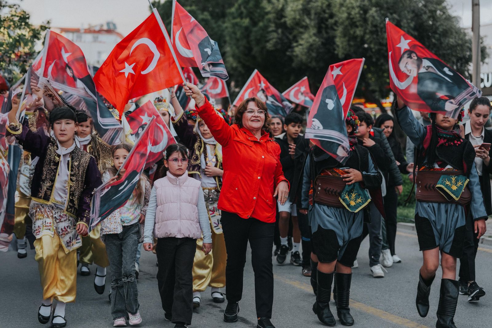 Didim Belediyesi tarafından düzenlenen akşam programı kapsamında gerçekleştirilen fener alayı, bayram coşkusunu sokaklara taşıdı. Belediye binası önünden başlayan yürüyüş, marşlar eşliğinde Cumhuriyet Meydanı’nda sona erdi.