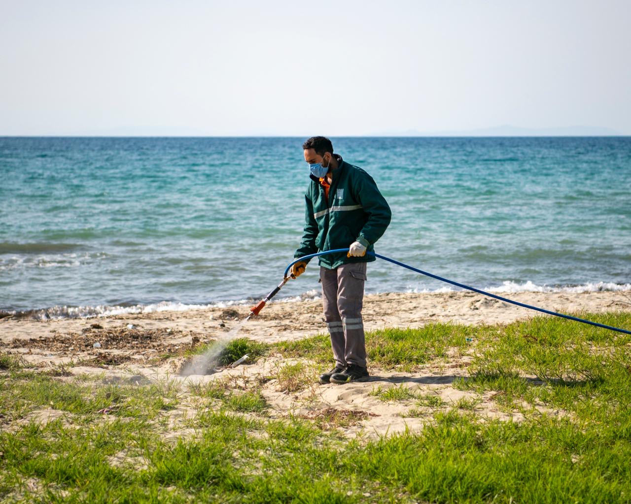 Kuşadası Belediyesi Park ve Bahçeler Müdürlüğü ekipleri, kent genelinde başlattığı bahar temizliği çalışmaları kapsamında, Güzelçamlı Mahallesi’nden Kuştur Mevkii’ne kadar uzanan kıyı şeridinde yabani otla mücadele çalışmalarını aralıksız sürdürüyor.