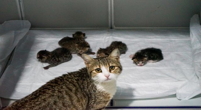 Sokak kedisinin bu süreçte tüm yaptıkları ise kliniğin güvenlik kameralarına anbean yansıdı. Veteriner hekimler ise dünyaya gelen 5 yavru ve anneyi bakıma alarak sağlık kontrollerini gerçekleştirdi. Sokak kedisinin doğum için kliniği seçmesinin şaşkınlığını yaşadığını ifade eden klinik sahiplerinden Veteriner Hekim Ömer Çınar, yaşanan süreci anlatarak "O gün muayene odasında olduğumuzdan başlangıcını fark edemiyoruz. Kedi doğum öncesinde kliniğin yanına geliyor ve beklemeye başlıyor. Sonra kapının önünde dolaşıyor. Aç olduğunu düşündük kuru mama verdik ama yemedi. Sonra yaş mama verdik. Sonra kucağıma çıktı. Sonra doğumun ileri aşamada olduğunu fark ettik, elim ıslandı ve doğum suyunun geldiğini fark ettik. Aşağıda sessiz bir yere aldık ve birkaç saat sonra 5 tekir yavru ile bizi bekledi. Medikal ve sağlık bir durumdalar. Yavrular 2 aylık olunca anneyi kısırlaştıracağız. Ardından da anneyi ve yavrularını sahiplendirmeyi düşünüyoruz. Bu konuda da vatandaşlarımızdan yardım bekliyoruz" dedi.