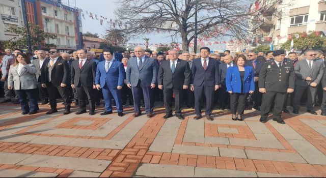 İlçe genelinde düzenlenen programlar kapsamında saygı duruşu ve İstiklal Marşı’nın okunmasının ardından Atatürk Anıtı’na çelenk sunuldu.