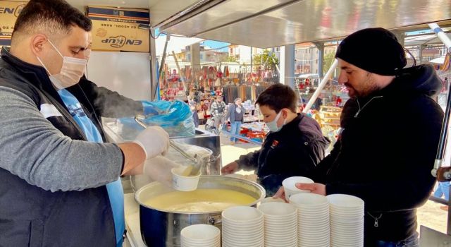 Didim Belediyesi'nin soğuk kış günleri boyunca vatandaşlara çorba servis ettiği ikram aracı, pazar alanına gelen Didimlilerin ve pazarcı esnafının yüzünü güldürdü.