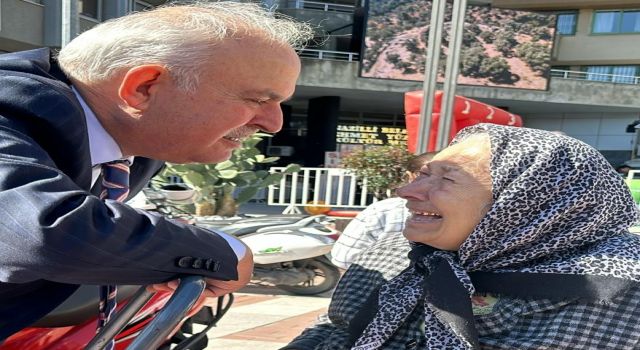 Nazilli’de 80 yaşındaki Fatma Dumanoğlu ile Belediye Başkan Adayı Esat Ergüler’in diyaloğu görenleri duygulandırdı.
