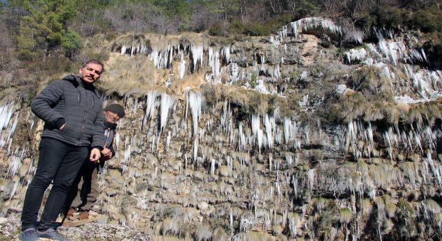 Son yıllarda iklim değişikliği ve kuraklık nedeniyle kanyona gelen su kollarında buzlanma yaşanmazken, Muğla’ya Ocak ayından itibaren yağan kar yağışı ve mevsim normallerinin üzerinde seyreden soğuk hava nedeniyle kanyonun başlangıcındaki şelale ve su kollarında uzun buz sarkıtları oluştu.