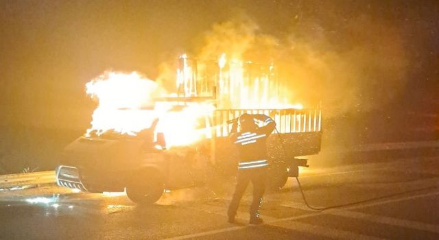 Olay, Kuşadası Söke yolu üzerinde meydana geldi. Edinilen bilgiye göre Söke istikametine giden pencere malzemeleri yüklü bir kamyonet, seyir halindeyken birden yanmaya başladı. Yangını fark eden araç sürücüsü, aracını yolun sağına çekerek durumu 112 Acil Çağrı Merkezi’ne bildirdi. Motor bölümünde başlayan yangın kısa sürede kamyoneti sardı. İhbar üzerine bölgeye Aydın Büyükşehir Belediyesi İtfaiye Daire Başkanlığı ekipleri sevk edildi. Kısa sürede bölgeye gelen itfaiye ekipleri, alev topuna dönen aracı söndürmek için yoğun çaba sarf etti. Ekiplerin müdahalesi ile alevler söndürülürken, yangında kamyonet kullanılmaz hale geldi. Kamyonet içerisinde bulunan şoför ve yolcu konumundaki vatandaşlar şans eseri yara almazken, olay ile ilgili inceleme başlatıldı. (iHA)