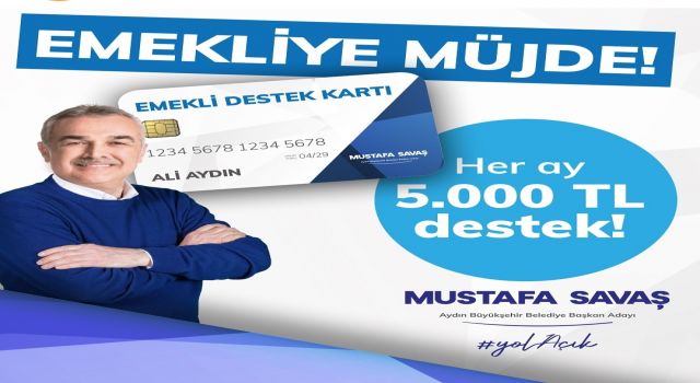 Mustafa Savaş, Aydın’da yaşayan emekliler için müjdeyi verdi. Savaş, emekli kartla birlikte her ay 5 bin TL destek vereceklerini açıklayarak,