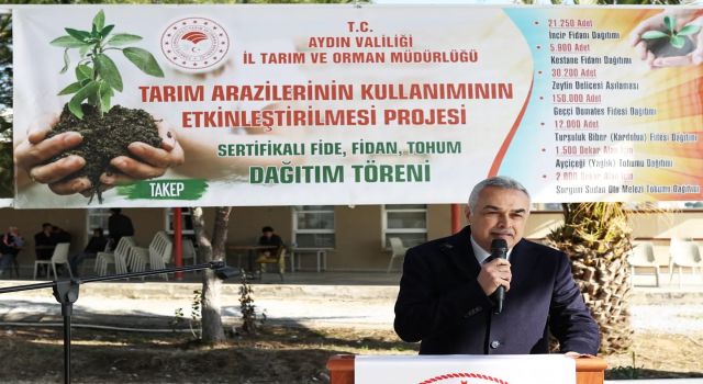 Aydın Valisi Yakup Canbolat, Tarım Arazilerinin Kullanımının Etkinleştirilmesi Projesinin 2024 yılı faaliyetleri kapsamında Aydın’da 21 bin 250 adet incir fidanı, 5 bin 900 kestane fidanı, 30 bin 200 zeytin delicesi aşılaması, 150 bin geççi domates fidesi, 12 bin turşuluk fidesi, Bin 500 dekar alan için ayçiçeği tohumu ve 2 bin dekar alan için sorgun sudan otu melezi tohumunun il genelinde dağıtılacağını söyledi.