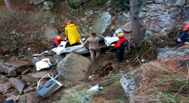 3 kişinin içinde etrafa çarparak sürüklendiği ve kayaların arasına sıkışan beyaz otomobil ile çevresi didik didik arandı. Ekipler ilk olarak o noktaya yoğunlaştı, araç yapılan çalışmayla yerinden zorlukla çıkarıldı ancak Alptekin'in izine rastlanmadı.