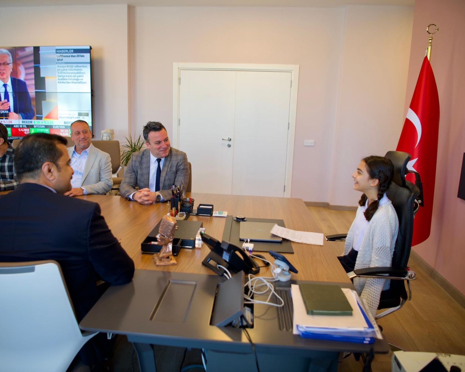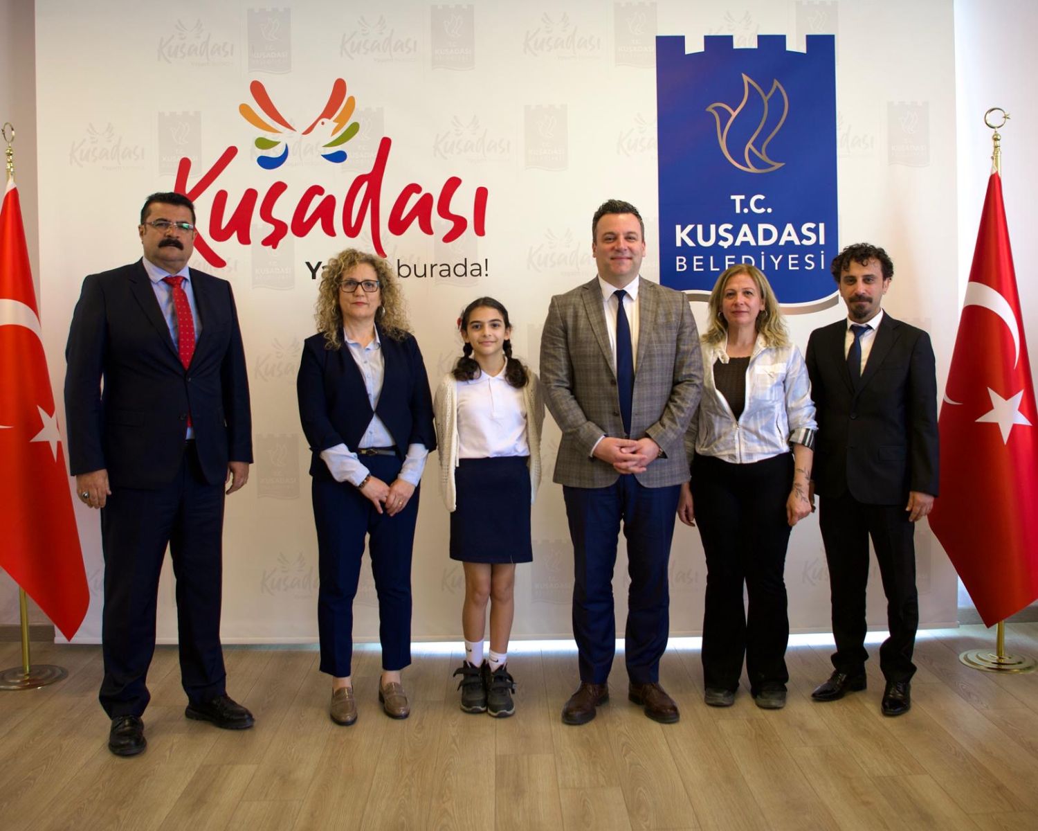 Kuşadası Belediyesi’nde 23 Nisan Ulusal Egemenlik ve Çocuk Bayramı kutlamaları kapsamında Belediye Başkan Vekili Tahsin Demirtaş, makamını sembolik olarak Pakize Kamil Çağlayan Ortaokulu öğrencisi Derin İşyar’a devretti.