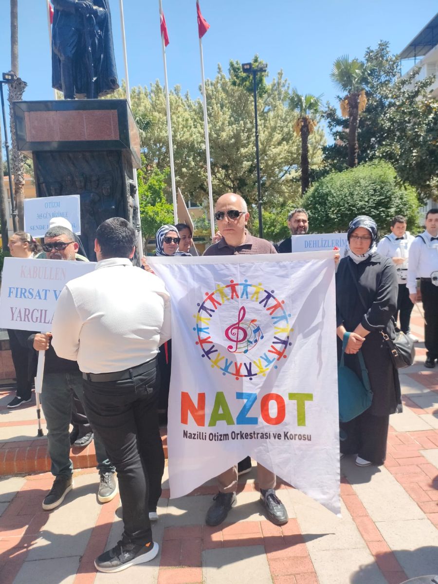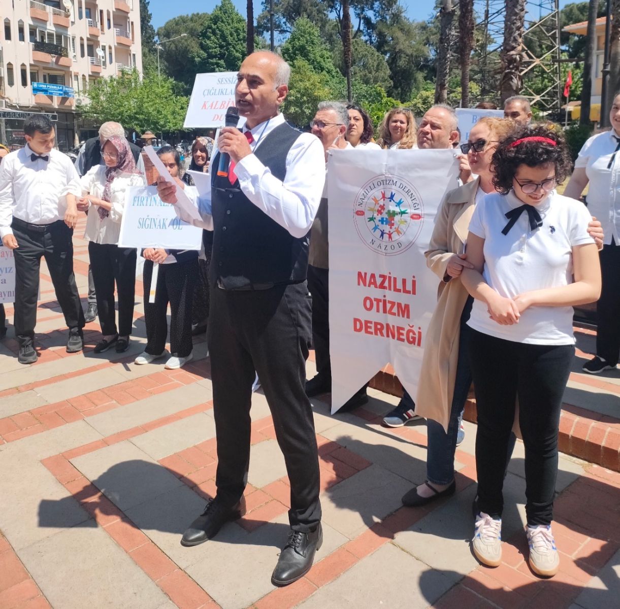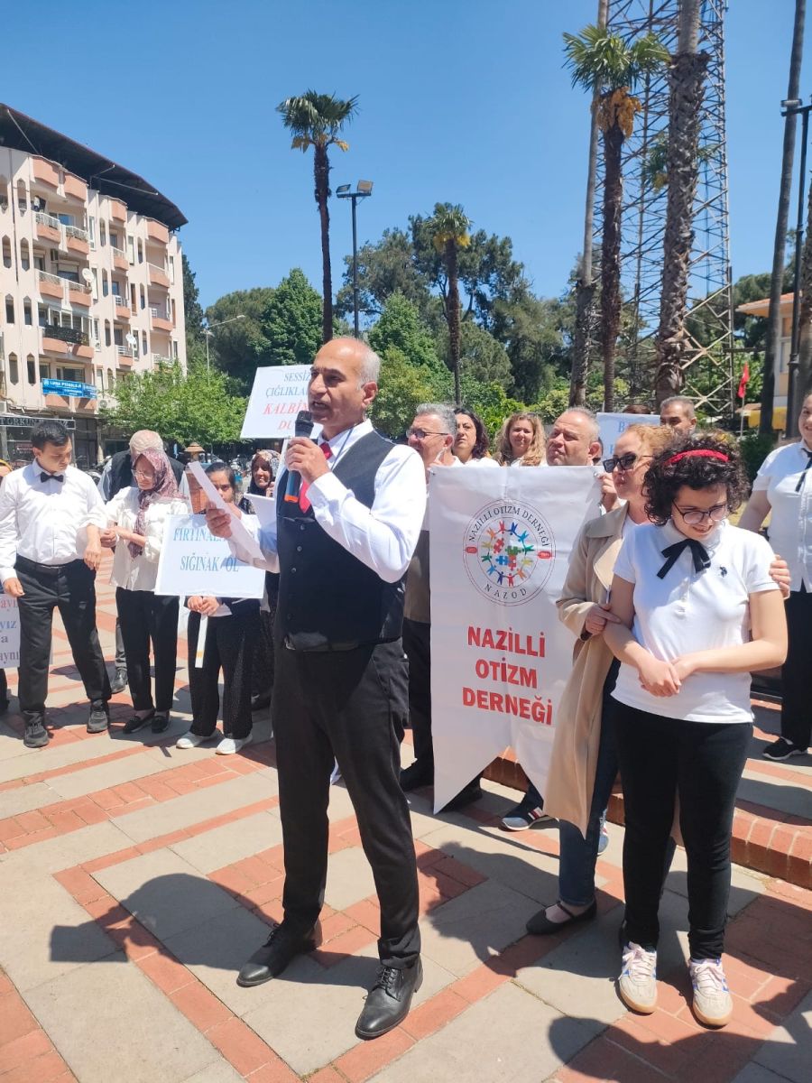 Daha sonra NAZOD Başkanı Muzaffer Uyan söz aldı. Muzaffer Uyan, “Nazilli’de yaşayan otizmli bireyler ve aileleri olarak, uzun süredir devam eden ciddi bir eşitsizliği ve mağduriyeti kamuoyunun dikkatine sunmak zorunda kalmış bulunuyoruz. Aile ve Sosyal Hizmetler Bakanlığı tarafından yürütülen Otizm Eylem Planı kapsamında; Antalya (Kepez), Mersin, Ankara (Sincan) ve Nazilli’de pilot uygulama olarak açılan Otizm Gündüz Bakım, Rehabilitasyon ve Aile Danışma Merkezleri, otizmli bireylerin yaşam kalitesini artırmak ve ailelerin yükünü hafifletmek adına son derece önemli bir adımdır” dedi.