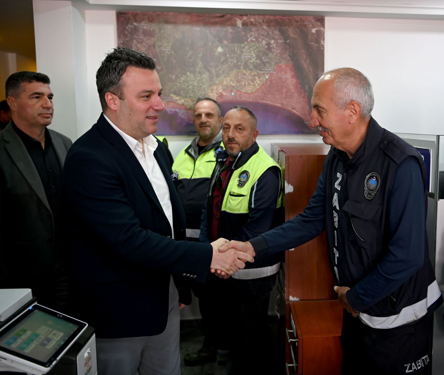 Başkan Vekili Tahsin Demirtaş güne Kuşadası Belediyesi Zabıta Müdürlüğü’nü ziyaret ederek başladı. Zabıta personeliyle birlikte kahvaltı yapan Başkan Vekili Demirtaş’a Kuşadası Belediye başkan yardımcıları da eşlik etti. Samimi bir atmosferde geçen buluşmada, belediye hizmetlerinin sahadaki önemi ve ekip çalışmasının değeri vurgulandı. Zabıta Müdürlüğü’nün kent genelindeki çalışmaları hakkında bilgi alan Başkan Vekili Tahsin Demirtaş, özveriyle görevlerini yapan personele teşekkür etti.