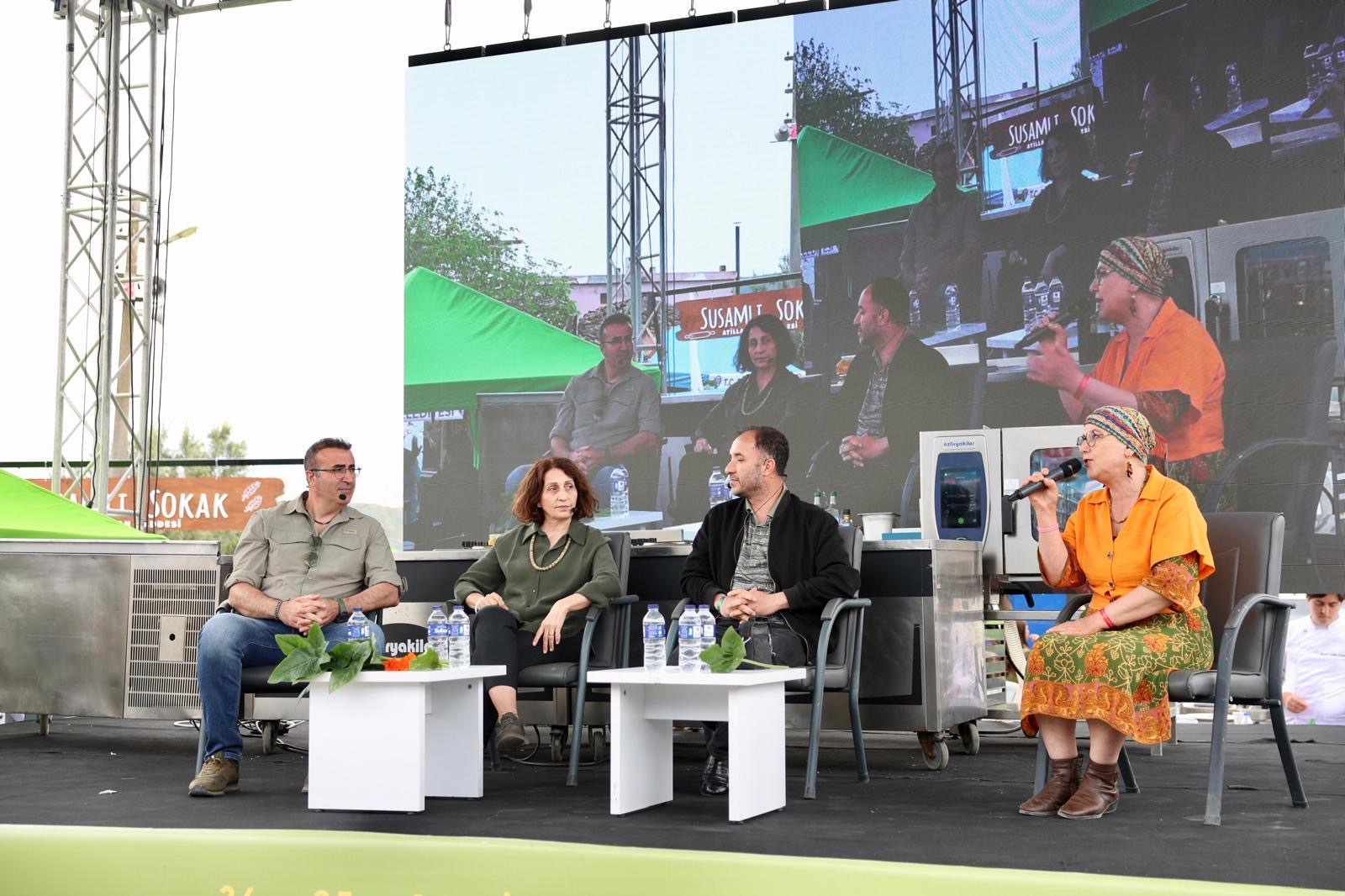 Festival alanında Ege’nin birbirinden özel yemekleri, zeytinyağlıları, ot yemekleri ve deniz ürünleri ziyaretçilerin beğenisine sunulurken, yerel üreticiler de ürünlerini tanıtma fırsatı buluyor. Katılımcılar hem lezzet yolculuğuna çıkıyor hem de Ege kültürünü yakından tanıma imkânı elde etti.