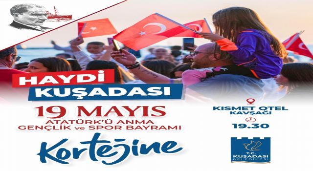 19 Mayıs Atatürk’ü Anma Gençlik ve Spor Bayramı, saat 10.00’da Özer Türk Stadyumu’nda gerçekleşecek resmi tören ile başlayacak. Halk oyunları ve spor gösterileri ile renklenecek olan kutlamalar saat 17.00’da İbramaki Sanat Galerisi’nde Kuşadası Belediyesi tarafından düzenlenen 19 Mayıs temalı resim, şiir ve kompozisyon yarışması sergisi ile sürecek. Serginin ardından saat 19.30’da başlayacak Gençlik Korteji, bayram coşkusunu zirveye taşıyacak. Kortejin ardından saat 21.00’da Belediye Hizmet Binası önünde Ege Üniversitesi Devlet Türk Musikisi Konservatuvarı Türk Halk Oyunları Bölümü Ekin Dans Topluluğu tarafından “Bu 100den” adlı dans tiyatrosu sahnelenecek. Saat 20.00’da ise Pera Düğün Salonu’nda Türk Anneler Derneği tarafından Dünya Medeniyetler Korosu konseri düzenlenecek.
