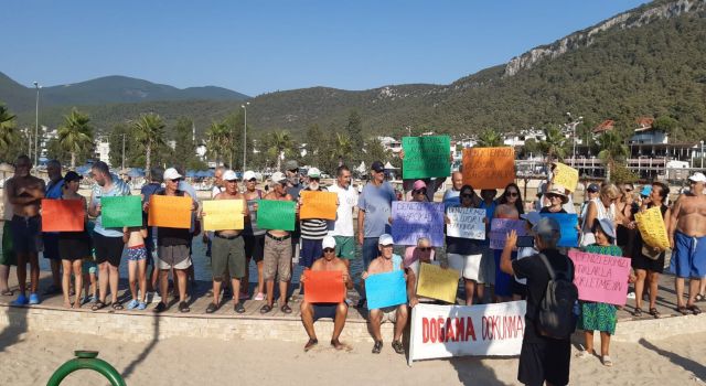 Bölgede bulunan bir otel tarafından yaratılan halk sağlığı tehdidi yaratan, çevre ve doğa kirliliğini protesto eden Akbük halkı plajda ‘Denizimizi Kirletemezsin’ sloganları atarak yürüdüler.