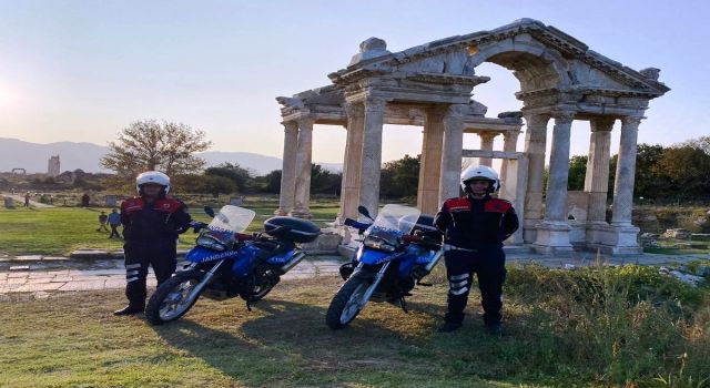 Koruma altında bulunan kültür ve tabiat varlıklarının korunması amacıyla Aydın İl Jandarma Komutanlığı’na bağlı devriyeler tarafından sit alanları, tarihi varlıklar sürekli kontrol ediliyor. Bu çerçevede Karacasu Geyre Mahallesi’nde bulunan Afrodisias Müzesi ve sit alanları devriye ekipleri tarafından kontrol edildi. Kontrollerin aralıklarla devam edeceği öğrenildi. iHA