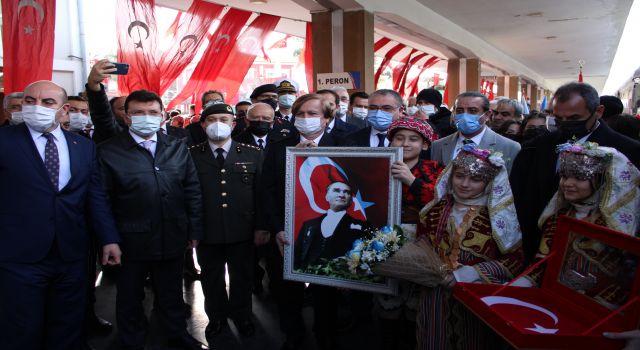 Valilik önünde gerçekleştirilen program tren garında devam etti. Atatürk’ün Aydın’a gelişinin simgesi olarak süslenen tren, Aydın Tren Garı’na yanaştı. Trenin içinden inen Aydın’ın yöresel kıyafetlerini giymiş öğrenciler, Vali Yardımcısı Hulusi Arat’a sevgi bayrağı ve çiçek takdim etti. Daha sonra Mustafa Kiriş Ortaokulu öğrencileri tarafından folklor gösterisi sergilendi. (iHA)