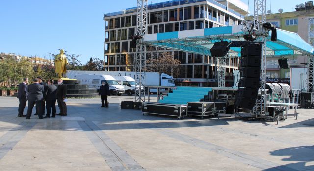 Toplu açılış törenleri kapsamında Aydın’a gelecek olan Cumhurbaşkanı Recep Tayyip Erdoğan için Atatürk Kent Meydanı’nda son kontroller yapıldı.