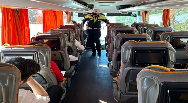 Ayrıca denetimlerde otobüs şoförlere kural ihlali yapmamaları gerektiği anlatılarak seyir halindeyken cep telefonu kullanılmaması, hız limitlerine uyulması ve araç kullanım sürelerine uyulması konularında uyarılar yapıldı.