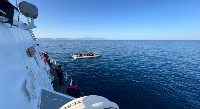 Aydın’ın Kuşadası ilçesi açıklarında lastik bot içerisindeki 37 düzensiz göçmen kurtarıldı.