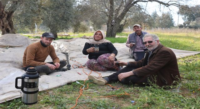 Aydın’da piknik havasında zeytin hasadı