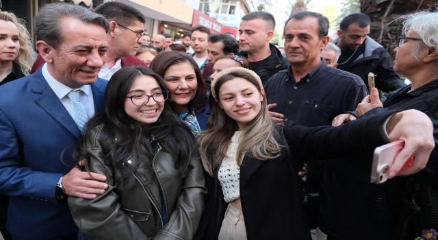 Mahalli İdareler Seçimleri'ne sayılı günler kala, çalışmalarında hız kesmeyen Aydın Büyükşehir Belediye Başkanı Özlem Çerçioğlu, saha çalışmaları kapsamında Efeler ilçesinde esnaflarla bir araya geldi. CHP’nin Efeler Belediye Başkanı Anıl Yetişkin ile birlikte Adnan Menderes Bulvarı üzerindeki esnafları ziyaret eden Başkan Çerçioğlu’na vatandaş ve esnafın ilgisi yoğun olurken, Çerçioğlu, tüm Aydın halkına gösterdikleri teveccühten dolayı teşekkür etti.