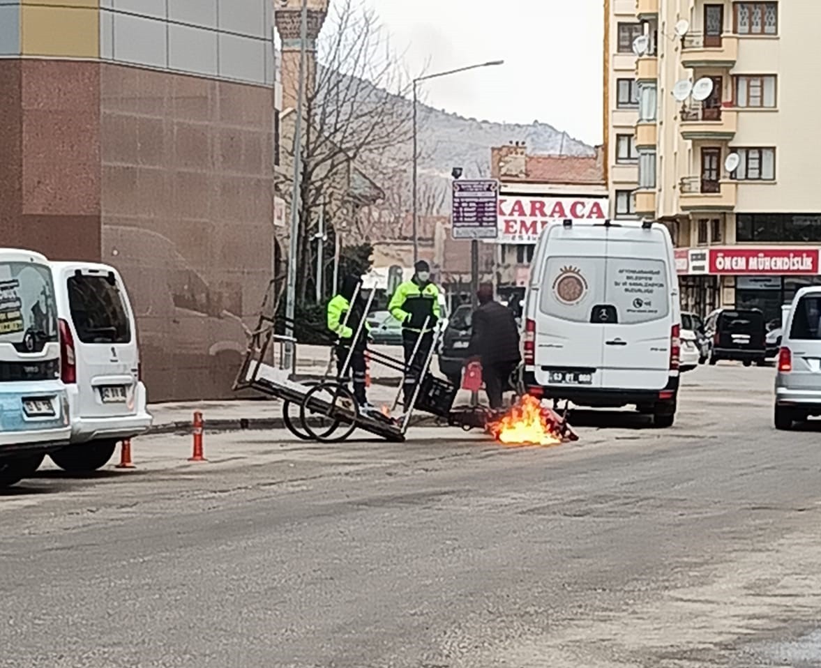 Benzin döküp ekmek teknesini böyle yaktı. Belediyeden yardım talebi karşılık göremeyince motosikletini ve ekmek satmak için arkasına bağladığı sepetini yaktı Etrafa küfürler savuran, bıçakla kendisini öldürmekle tehdit eden şahsı polis güçlükle sakinleştirmek gözaltına aldıAfyonkarahisar Belediye binası önünde hareketli dakikalarAfyonkarahisar’da, üzerinde ekmek satarak geçimini sağladığı arızalı motosikletinin yaptırılması için belediyeden yardım isteyen, ancak talebine karşılık bulamadığını belirten şahıs, öfkelenerek motosikletini ve ekmek satmak için arkasına bağladığı sepetini yaktı. Bıçakla kendisini öldürmekle tehdit eden şahsı polis güçlükle sakinleştirmek gözaltına aldı.Olay, Afyonkarahisar Belediyesi önünde meydana geldi. Edinilen bilgilere göre, kentte motosikletinin arkasına bağladığı sepetler ekmek satarak geçimini sağlayan Arif V., motosikleti arızalanınca yardım istemek için sabah saatlerinde Afyonkarahisar Belediyesine gitti. İddiaya göre, burada yetkililer ile görüşen Arif V., yardım talebine karşılık bulamayınca belediye binasının arka tarafına park ettiği motosikletinin yanına giderek bağırıp çığırmaya başlayıp kalabalığın şaşkın bakışları altında motosikletinin ve sepetinin üstüne benzin dökerek ateşe verdi. Ardından yanındaki bıçağı çıkararak kendisine zarar vermeye başladı.Polis şahsı güçlükle sakinleştirdiOlaya önce zabıta ve belediye güvenlik görevlileri müdahale etmeye çalıştı. Müdahaleyi gören şahıs daha fazla öfkelenerek etrafta küfürler savurmaya başladı. Ardından bölgeye gelen polis ekipleri şahsı önce sakinleştirip elindeki bıçağı alarak kendisine zarar vermesinin önüne geçti daha sonra olay yerine çağrılan ambulans ile Afyonkarahisar Devlet Hastanesine kaldırıldı.Belediye yardım edileceğini öne sürdüOlayın ardından polis tarafından inceleme başlatılırken, Afyonkarahisar Belediyesi Yardım Birimi yetkililerinden alınan bilgide ise belediye görevlilerinin motosikletle ilgili kayıt ve güvenlik sorgulaması yapıldığı esnada şahsın sinirlenerek dışarı çıktığı ve ardından bu eylemi gerçekleştirdiği öne sürüldü.Öte yandan, hastaneye kaldırılan şahsın tedavisinin ise devam ettiği öğrenildi. İHA