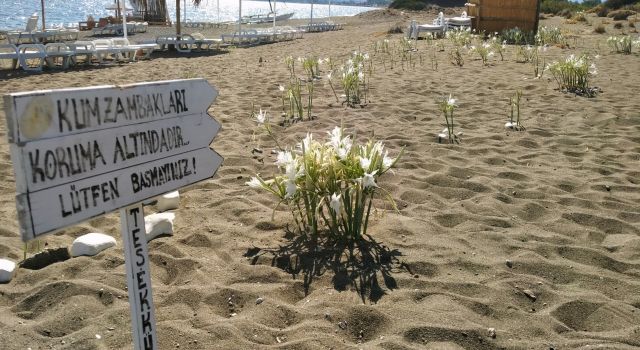 Muğla sahil şeridinde Datça ve Sarıgerme’de sonbahar aylarında çıkan kum zambakları sahilleri süslemeye başladı. Uluslararası Doğa Koruma Birliği tarafından koruma altına alınan kum zambaklarını koparmanın cezası ise 80 bin lira.