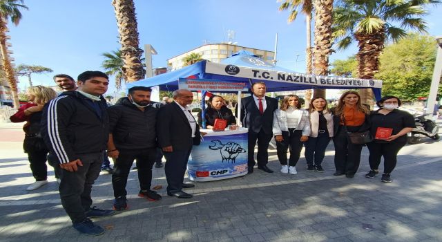CHP Nazilli İşçi Komisyonu Başkanı Muzaffer Kabalı ve yönetimi Gazi Mustafa Kemal Atatürk’ün ebediyete intikalinin 83.yıl dönümü sebebiyle TEB Bankasının önünde tatlı hayrı ve Nutuk dağıtımı yaptı.