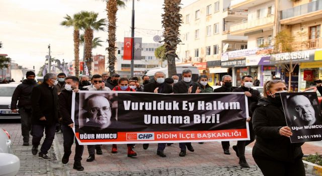 Cumhuriyet Halk Partisi Didim İlçe Örgütü tarafından gerçekleştirilen anma törenine Didim Belediye Başkanı A. Deniz Atabay, CHP Didim İlçe Başkanı Nurettin Koçak, Belediye Başkan Yardımcıları Zeynel Şener, Yusuf Deveci, Belediye Meclis üyeleri ve vatandaşlar katıldı. Program kapsamında, Didim Cumhuriyet Halk Partisi İlçe Binası önünden başlayan yürüyüş, Atatürk Bulvarı ve Cumhuriyet Caddesi üzerinden devam ederek Uğur Mumcu Parkı’nda sona erdi.