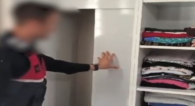 Aydın İl Jandarma Komutanlığı ekipleri hakkında 5 yıl kesinleşmiş hapis cezası bulunan G.K. (40) isimli şahsın bulunduğu ikamette arama yapıldı. Nazilli İlçe Jandarma Komutanlığı 5. JASAT Timi ve Merkez Jandarma Karakol Komutanlığı tarafından yapılan aramada ilk etapta şahıs tespit edilemedi. Evde gizli bölme olabileceği değerlendirilerek yapılan detaylı inceleme sonucunda ikametin yatak odasında bulunan elbise dolabının sağ ve sol bölmelerinin derinliklerinin farklı olduğu ve dolapta gizli bölme olduğu tespit edildi. Yapılan aramada şahıs saklanmış olduğu gizli bölmede yakalandı. Şahıs sevk edildiği adli makamlarca tutuklanarak cezaevine gönderildi.
