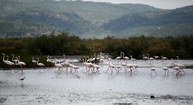 Ege Bölgesi kıyılarında, bahar yağmurlarının etkisiyle sazlık alanlardaki su seviyeleri yükseldi. Su kuşlarının beslenmesine elverişli şartların oluşmasıyla beraber Kuşadası ile Selçuk arasında kalan Pamucak’taki sulak alanlara, flamingolar gelmeye başladı. Göz alıcı pembe tüylere ve siyah kanat uçlarına sahip olan flamingoların beslenme görüntüleri ise seyrine doyumsuz manzara oluşturdu. Kanat açıklıkları 2 metreye kadar ulaşan 'Allı Turnalar', diğer su kuşlarından farklı olarak tuzlu sularda da yaşayabiliyor. İnce uzun bacakları ve eğri boyunlarıyla da dikkat çeken flamingolar, toplu halde belenirken çıkardıkları seslerle de dikkat çekiyor. Bölgeyi evleri olarak benimseyen flamingolar, sucul omurgasızlarla besleniyor. iHA