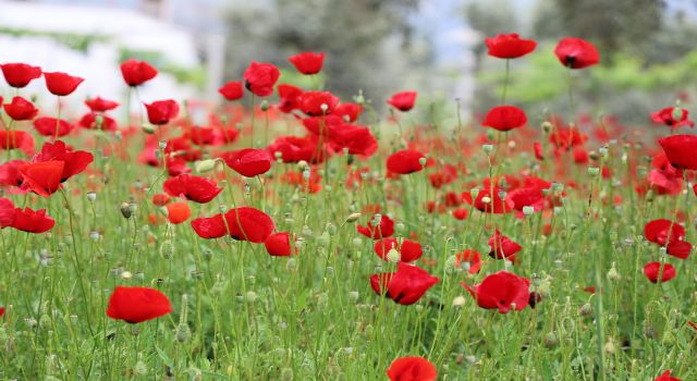 Aydın'ın Efeler ilçesinde etkili olan yağışların ardından açan gelincik çiçekleri, bahçe ve tarlaları kırmızıya boyadı. Özellikle Kızılcaköy Mahallesi'ndeki zeytin bahçeleri, gelinciklerin açmasıyla adeta kartpostallık manzaralara sahne oldu.