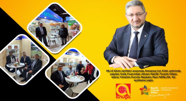 09-13 Ekim tarihleri arasında Almanya’nın Köln şehrinde yapılan Gıda Fuarı’ndan dönen Nazilli Ticaret Odası adına Yönetim Kurulu Başkanı Nuri Arslan bir açıklama yaptı.