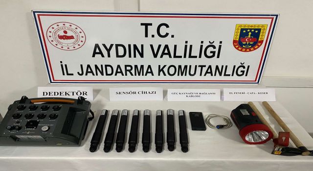 Karacasu İlçe Jandarma Komutanlığınca tarihi eser kaçakçılığına yönelik çalışma gerçekleştirildi. Edinilen bilgiye göre Karacasu ilçesi Yenice Mahallesi’nde B.D. isimli şüpheli şahsın içerisinde bulunan araç durdurularak yapılan aramada 1 adet yeraltı arama cihazı, 8 adet sensör, 1 adet kazma, 1 adet keser, 1 adet el feneri ele geçirildi. Gözaltına alınan şüpheli hakkında adli işlem başlatıldı.