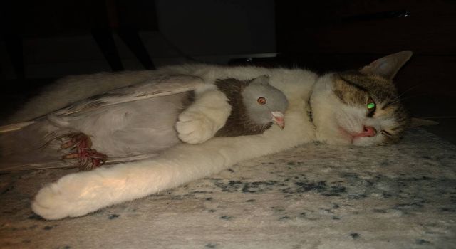Kedi ile güvercinin dostluğu görenleri şaşırttı