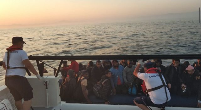 Kuşadası ilçesinde lastik bot içerisindeki 35 düzensiz göçmen sahil güvenlik ekipleri tarafından yakalandı.