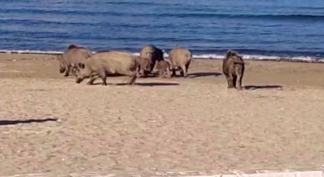 Kuşadası’nda sahili domuzlar bastı