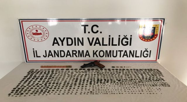 Aydın İl Jandarma Komutanlığı Kaçakçılık ve Organize Suçlarla Mücadele Şube Müdürlüğü ekipleri tarihi eser kaçakçılığına yönelik çalışmalarına aralıksız devam ediyor. Bu kapsamda istihbaratları değerlendiren ekipler Kuşadası ilçesinde 3 şahsa yönelik operasyon gerçekleştirdi. Yapılan çalışmalar kapsamında 3 şahsın işyeri ve üzerlerinde yapılan aramalarda 396 adet Roma dönemine ait bronz sikke, 185 adet Roma dönemine ait gümüş sikke, 170 adet Miletos dönemine ait gümüş sikke, 166 adet Ortaçağ dönemine ait gümüş sikke, 77 adet İskender dönemine ait gümüş sikke, 4 adet Bizans dönemine ait altın sikke, 2 adet Bizans dönemine ait altın küpe ile 1 adet ruhsatsız tabanca, 1 adet şarjör ve 29 adet tabanca fişeği ele geçirildi.