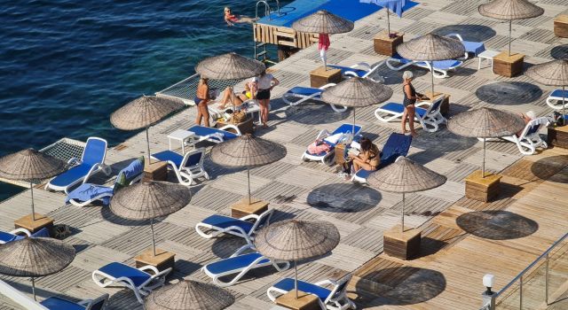 Ege Bölgesi’nin gözde turizm merkezlerinden Kuşadası, Kasım ayında yazdan kalma günleri yaşıyor. Hava sıcaklığının 24, deniz suyu sıcaklığının 20 derece olarak ölçüldüğü bölgede, güzel havayı fırsat bilen ilçe sakinleri, plajlarda 'kış güneşinin' tadını çıkardı. Kimi bölge sakini denize girerken kimisi de güneşlendi. Hava sıcaklarının yüksek seyretmesi bölge esnafını da memnun etti. (iHA)