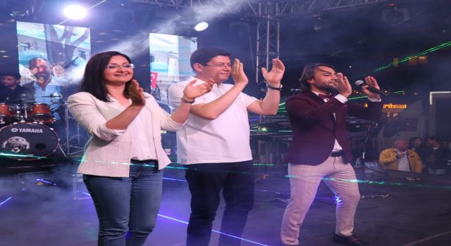 Konsere eşi Aslı Özcan ile katılan Belediye Başkanı Kürşat Engin Özcan, teşekkür konuşmasının ardından zeybek oyunu ile gençlerden büyük alkış aldı.