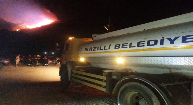 Nazilli Belediyesi, Söke'nin Argavlı Mahallesi'de çıkan ve rüzgarın etkisiyle hızla yayılan yangının söndürme çalışmalarına araç desteği verdi.