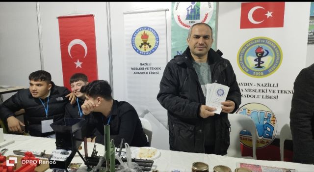 Nazilli Belediyesi tarafından 16-19 Aralık tarihleri arasında yapılan ve bölgenin dört bir yanından pek çok firmanın katıldığı Nazilli Tarım Hayvancılık ve Gıda Fuarı yoğun bir katılımla devam ediyor. Fuarda yerini alan meslek lisesi okulları da tanıtıcı ve bilgilendirici faaliyetlerde bulunuyorlar. Stantlarda tanıtım yapan okullardan biri olan Nazilli Mesleki Eğitim Merkezi’nin Müdürü Alperen Kılıç, yaptıkları çalışmaları anlattı.