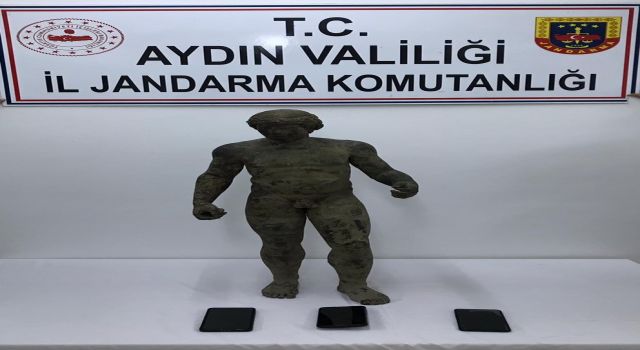 Kuşadası'nda gerçekleştirilen tarihi eser operasyonunda Roma dönemine ait bronz heykel ele geçirildi.