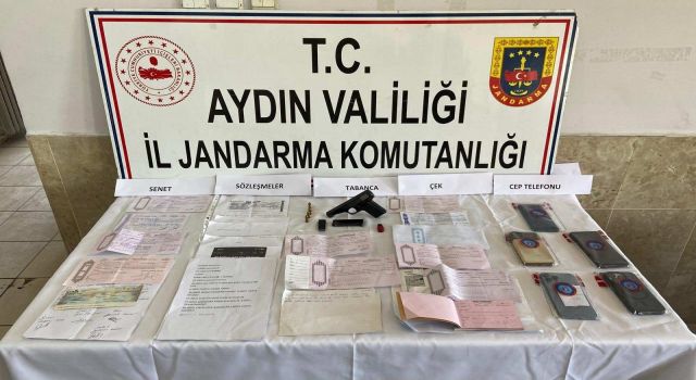 Aydın İl Jandarma Komutanlığı JASAT Timleri ve Nazilli İlçe Jandarma Komutanlığınca Nazilli Cumhuriyet Başsavcılığının koordinesinde eşzamanlı operasyon gerçekleştirildi. Geçtiğimiz 20 Şubat 2024 tarihinde başlatılan planlı çalışma kapsamında tefecilik suçunu işlediği tespit edilen 6 şüpheli takibe alındı. Yaklaşık 4 aylık çalışmanın ardından ekipler, S.U., D.U., M.U., Ö.U., F.U. ve İ.T. isimli şüphelilerin Nazilli’de bulunan adreslerinde 10 Haziran 2024 günü eş zamanlı operasyon gerçekleştirdi. 2 ikamet, 1 işyeri ve 4 araçta yapılan aramada 1 adet tabanca ile 5 adet fişek, 1 adet 50 sayfalık boş senet koçanı, 10 adet boş senet, 8 adet farklı tutarlarda senet, 2 adet çek, 5 adet imzalı boş sözleşme kağıdı, 5 adet tapu ve suça ilişkin muhtelif evrak ele geçirildi.