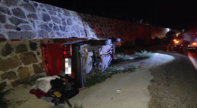 Kuşadası ilçesinde viraja girdiği sırada sürücüsünün direksiyon hakimiyetini kaybettiği otomobil takla atarak yağmur suyu kanalına düşerken, yan yatan otomobildeki 2 kişi yaralandı.