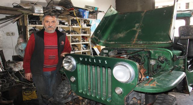 Aydın'ın Efeler ilçesinde 40 yıllık cip ustası Gürbüz Özince babasından kalma tamirhanesinde kendinden büyük ciplere yeniden hayat veriyor.