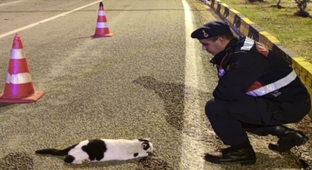 Yol kenarında yaralı halde bulunan hayvanlara jandarma şefkati
