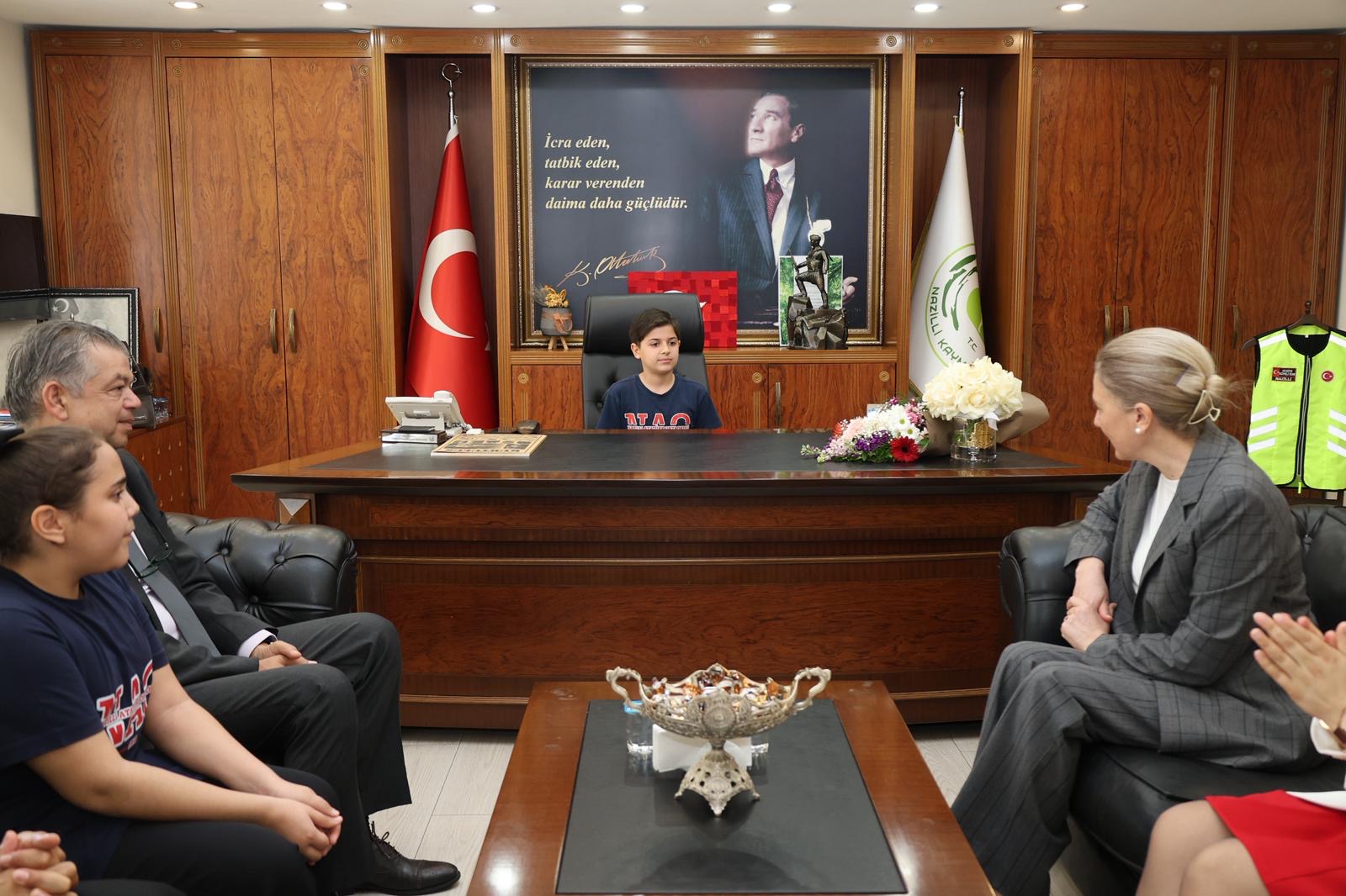 Ziyarette öğrencilere İlçe Milli Eğitim Müdürü Erdinç Güner, okul müdürü ve öğretmenleri eşlik etti. Kaymakam Huriye Küpeli Kan, tüm çocukların 23 Nisan Ulusal Egemenlik ve Çocuk Bayramı’nı kutlayarak, onların geleceğin teminatı olduğunu vurguladı.