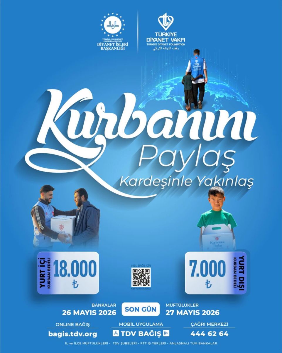 Paylaşımda, kurban bağışlarının Türkiye Diyanet Vakfı aracılığıyla gerçekleştirilebileceği belirtilerek vatandaşlara kolay ve güvenli bağış imkânı sunulduğu ifade edildi.