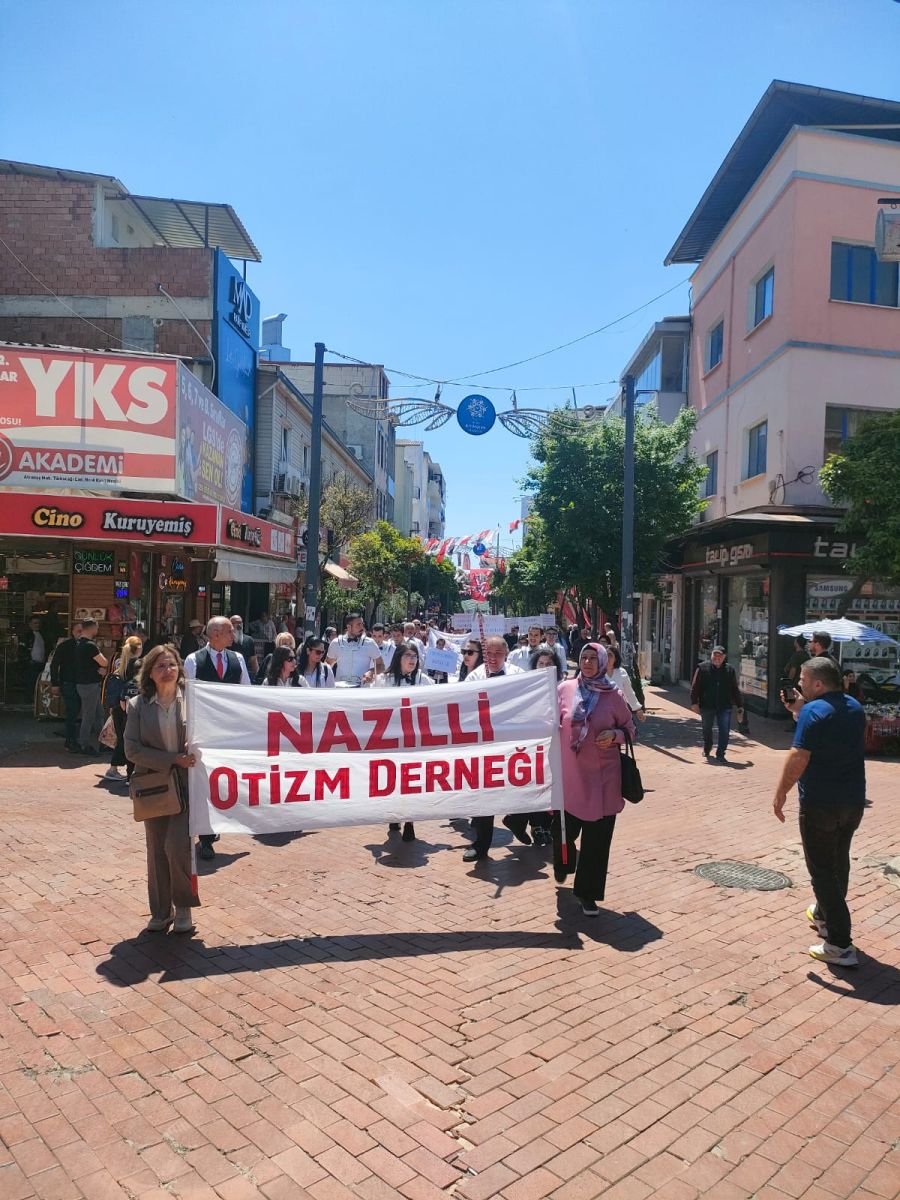 Nazilli Otizmliler Derneği, 23 Nisan etkinlikleri kapsamında İstasyon Meydanı’nda toplanarak basın açıklamasında bulundu. Açıklamanın ardından NAZOD Bando takımı Uzun Çarşı’da yürüyüş gerçekleştirdi.